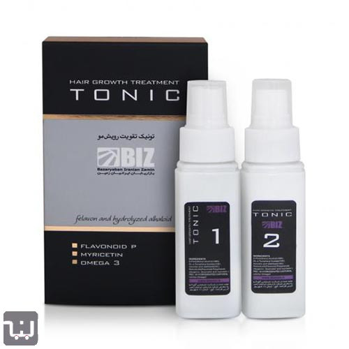 2- بعد از آبگیری موها، محلول تونیک تقویت و رویش مجدد بیز را روی نقاطی که ریزش بیشتری دارد اسپری کنید.